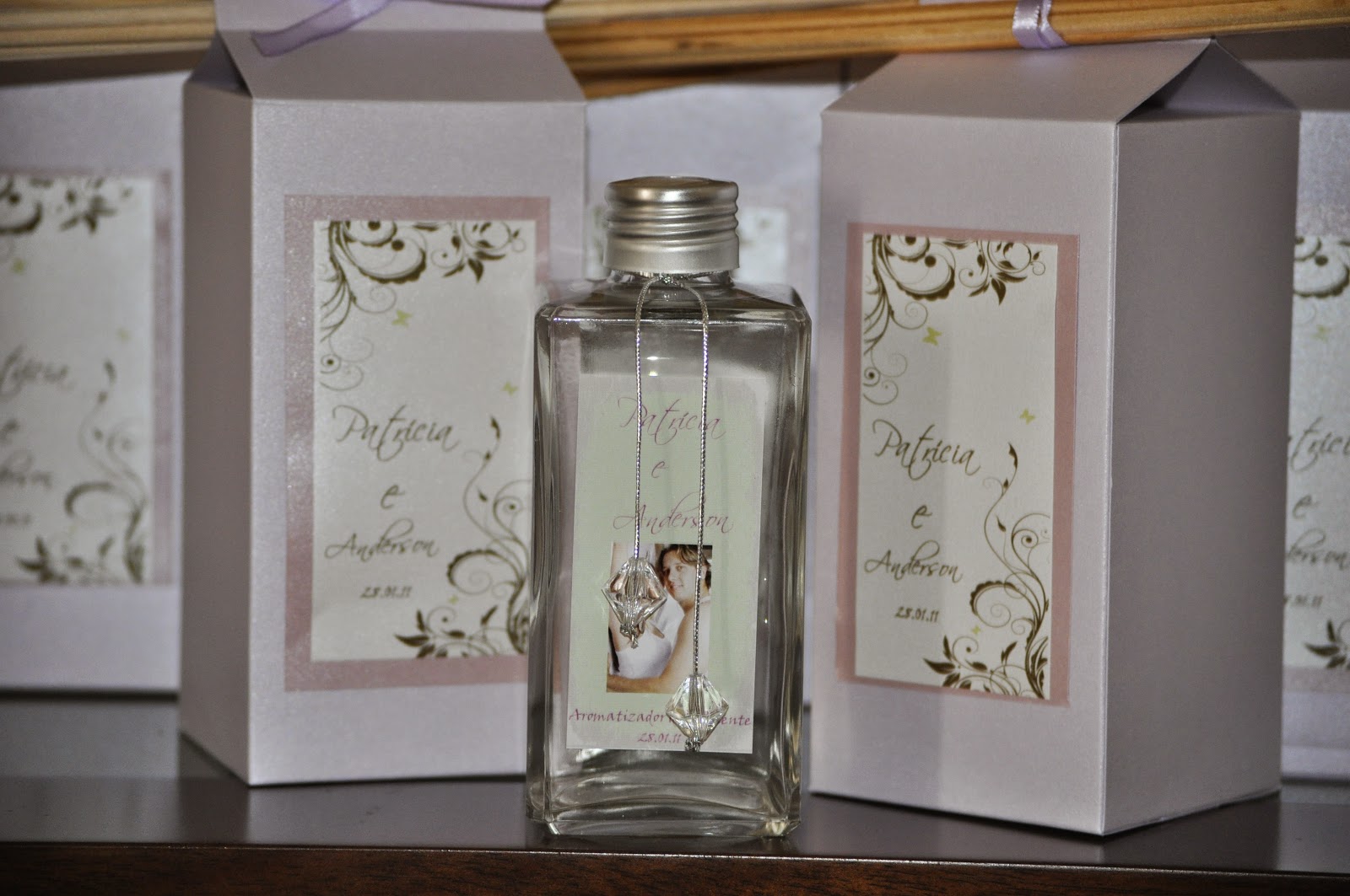 Para os convidados a lembrancinha escolhida foi o frasco de aromatizador de ambiente acompanhado de uma linda caixa personalizada.