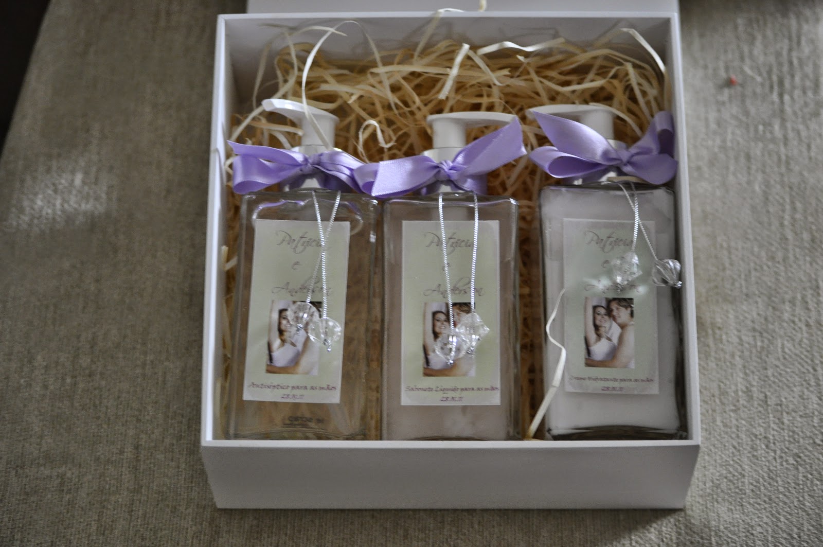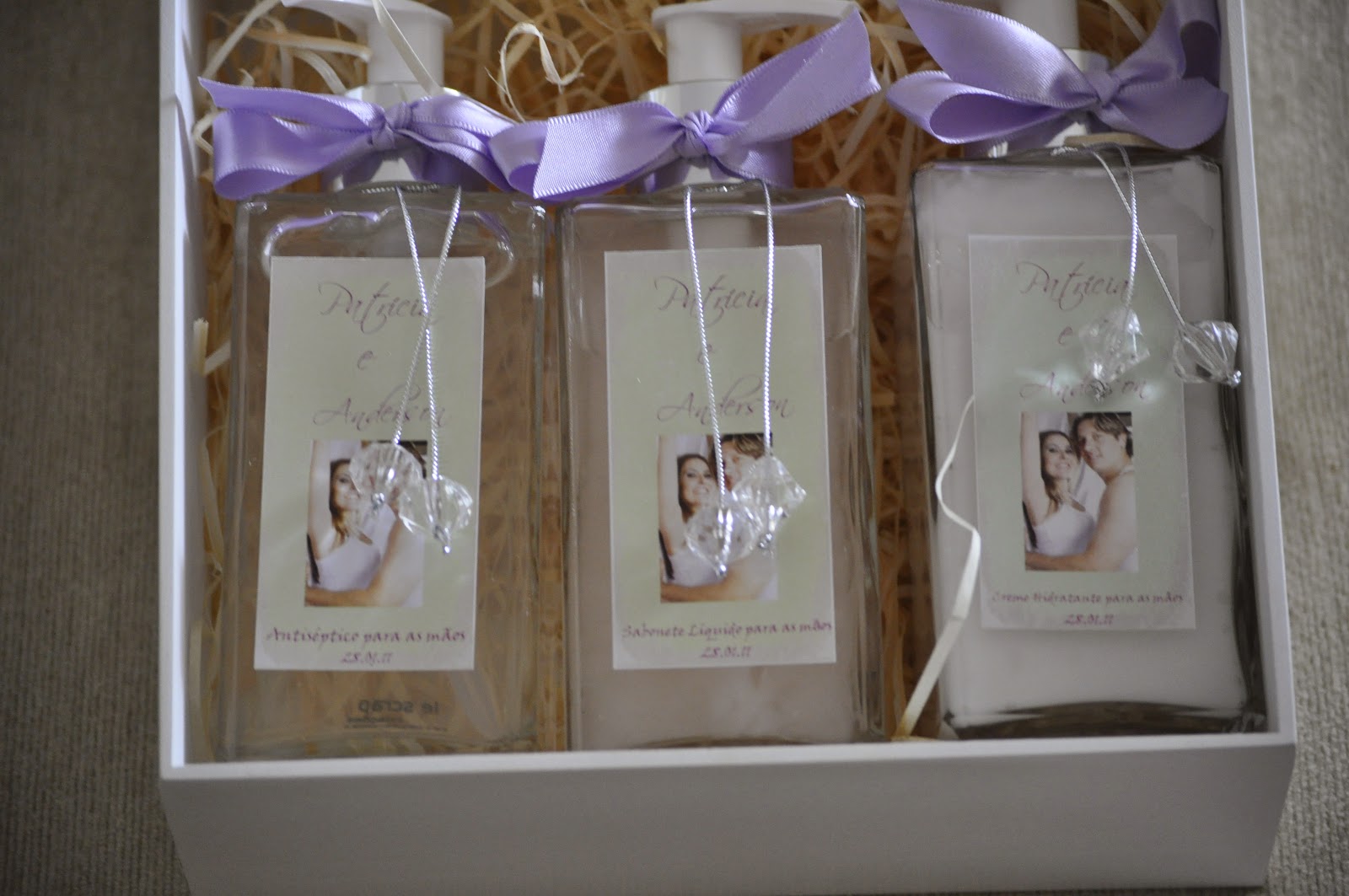 Como presente para os padrinhos e para os pais dos noivos ela escolheu um kit composto por: