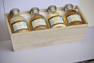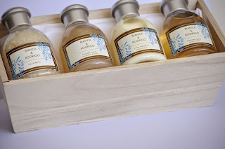 Como presente para os padrinhos e para os pais dos noivos ela escolheu um kit composto por: