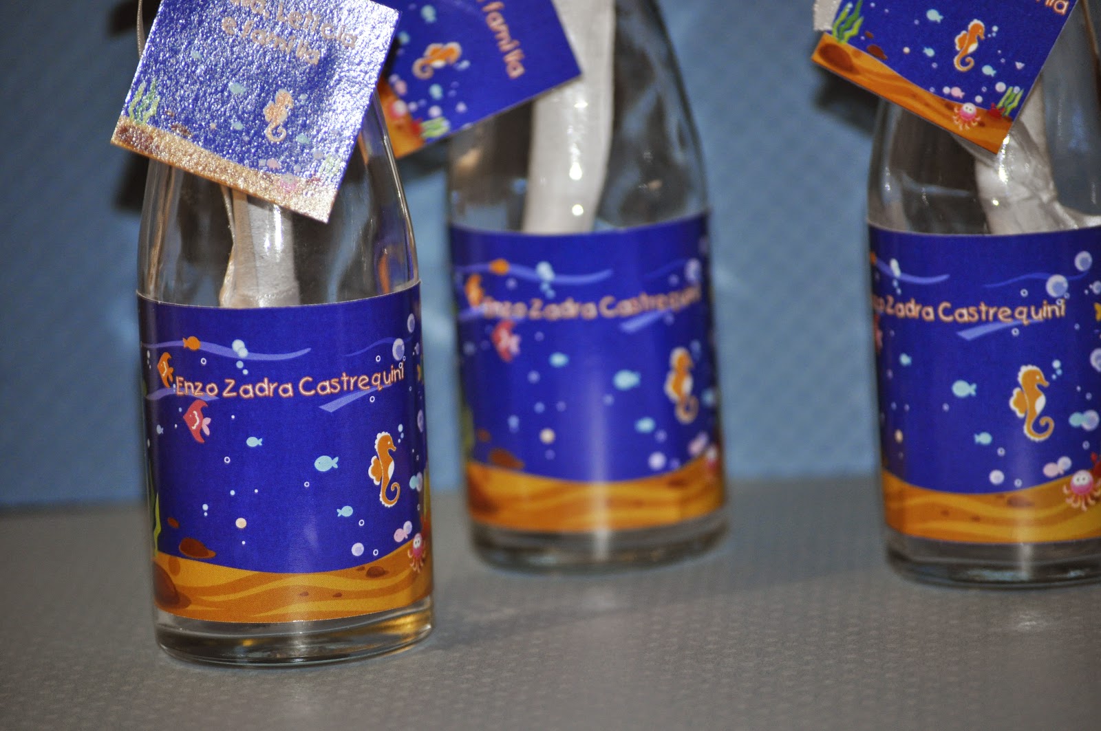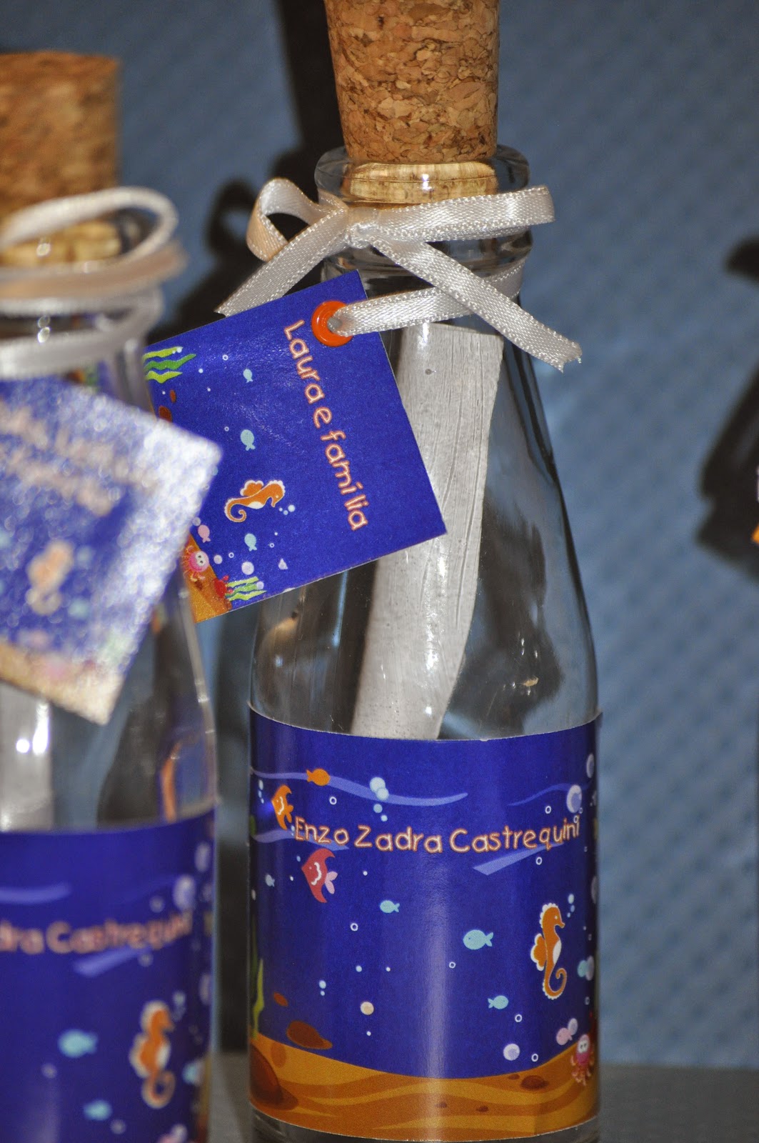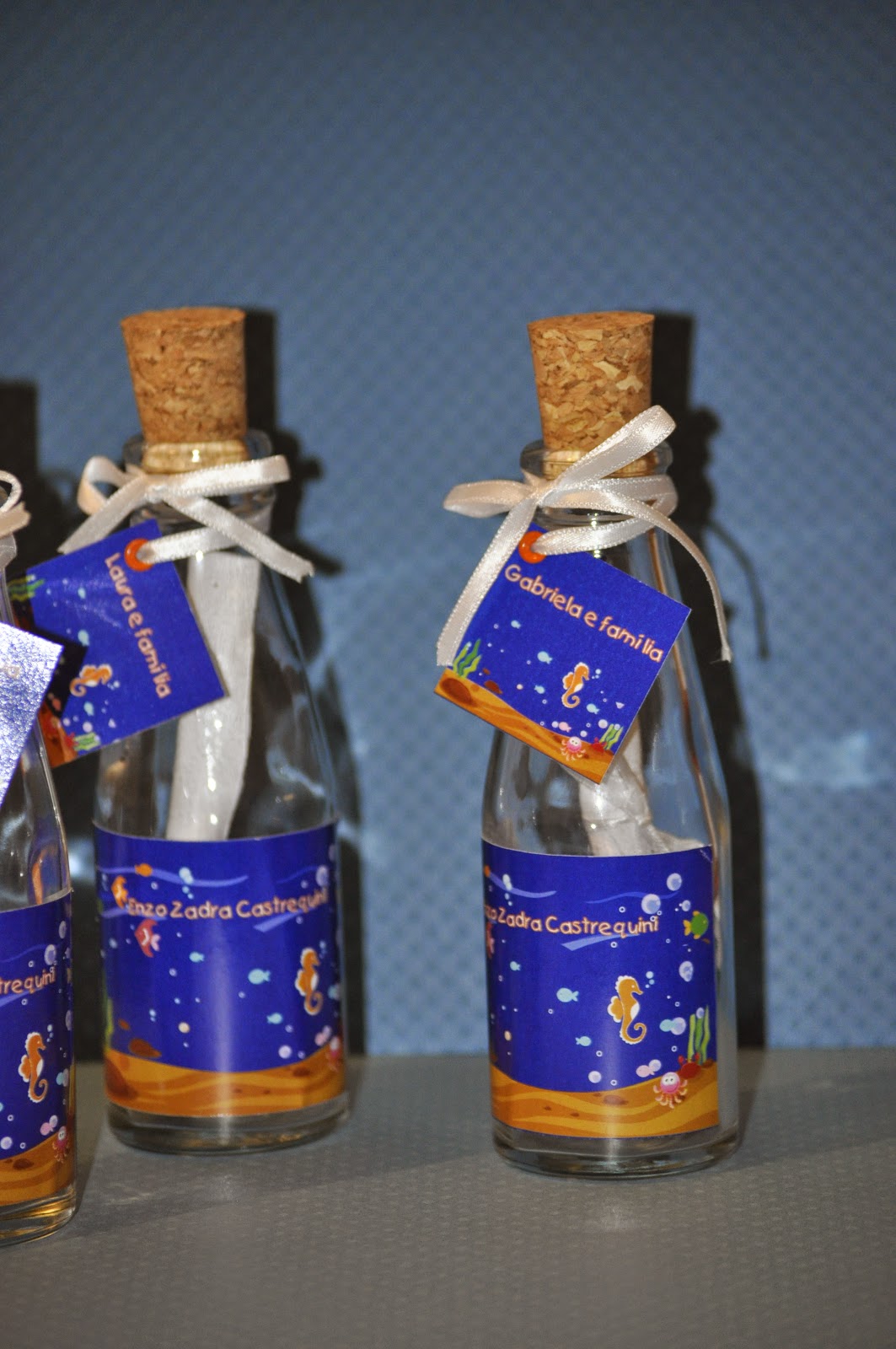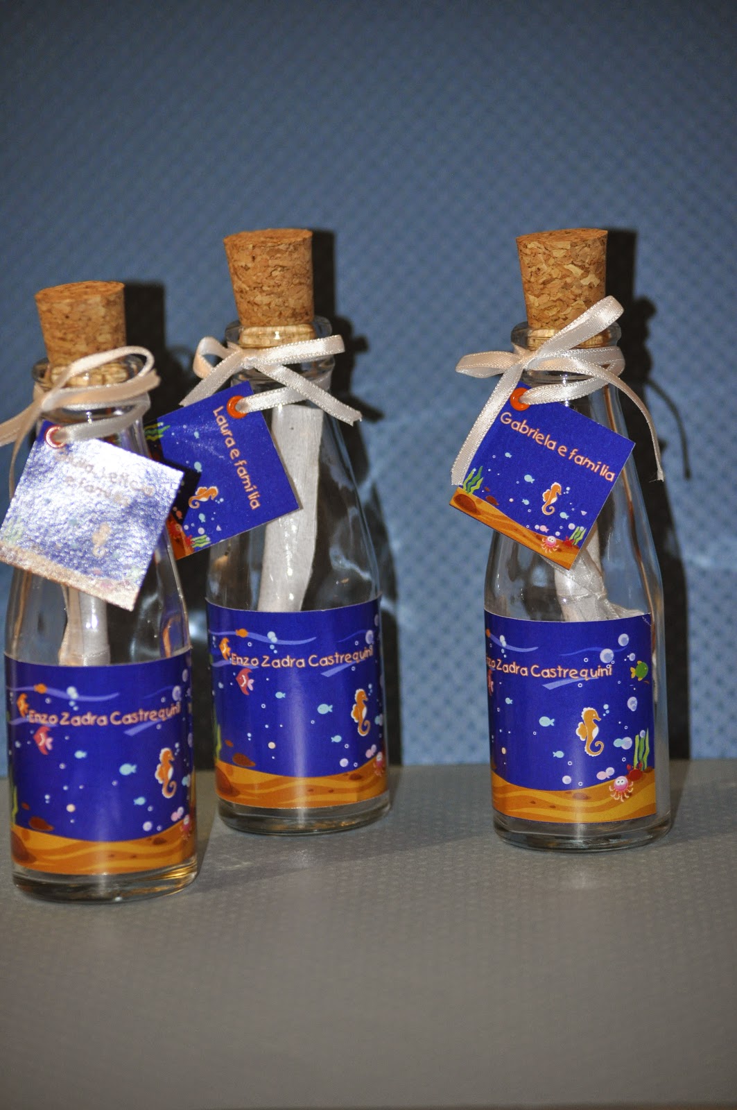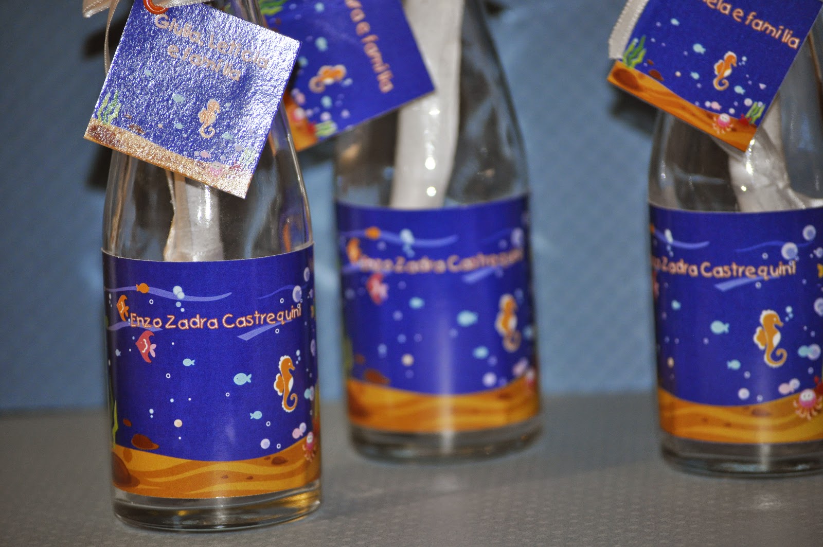 Os convites foram acompanhados de uma garrafinha que teve seu rotulo personalizado.