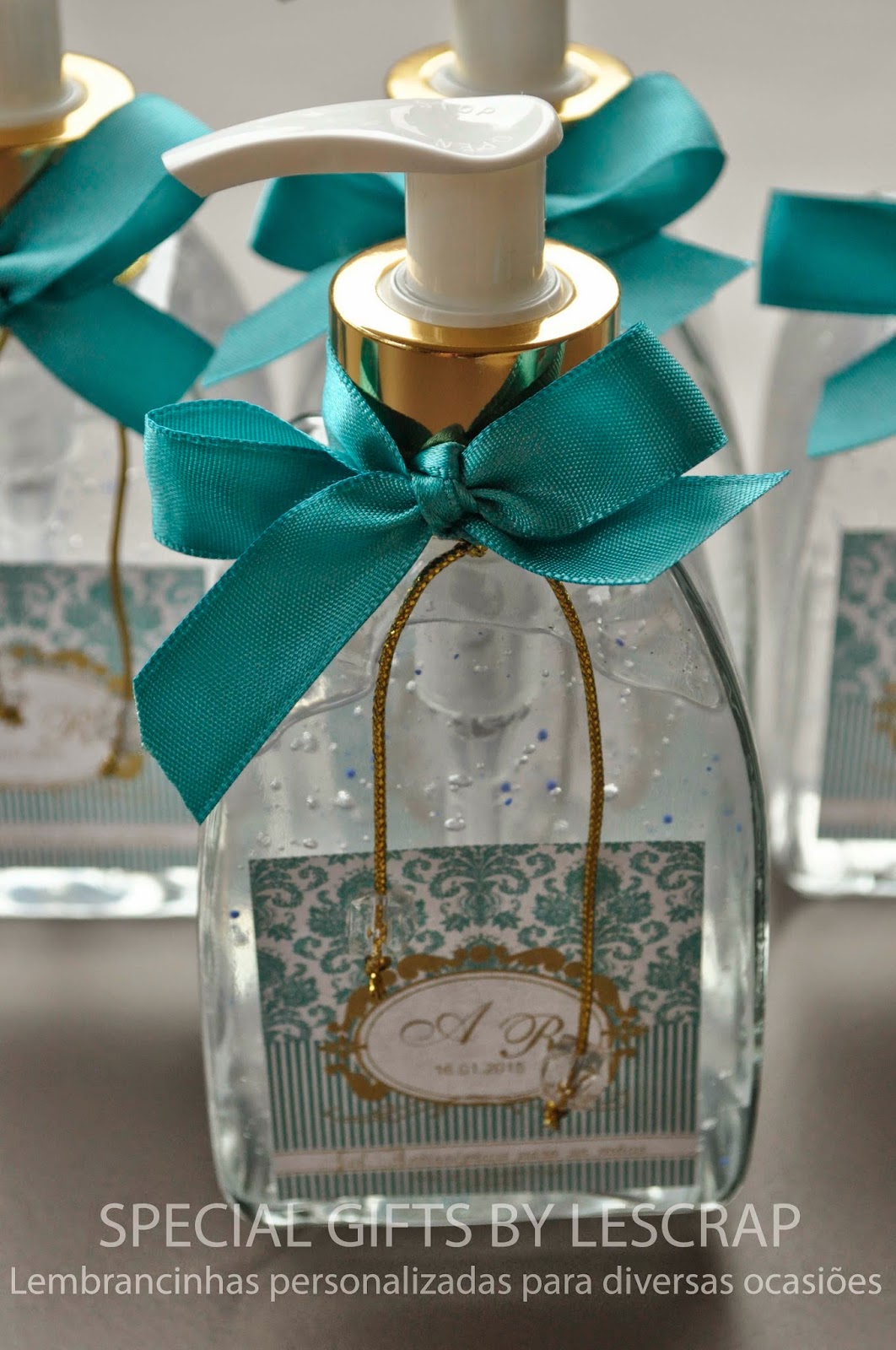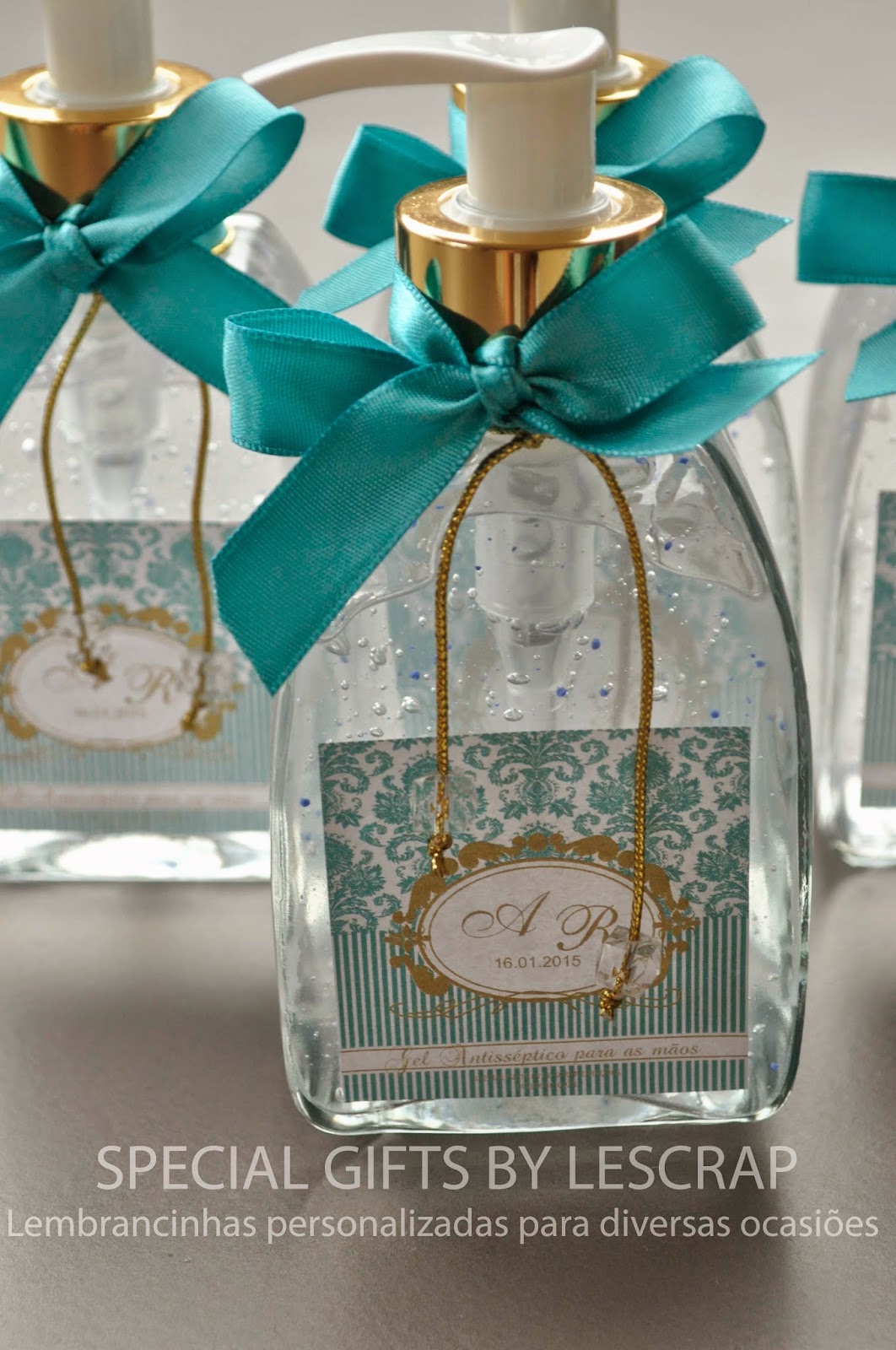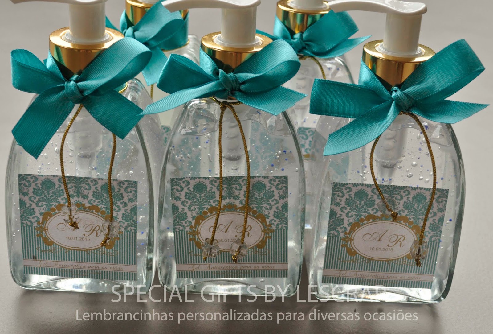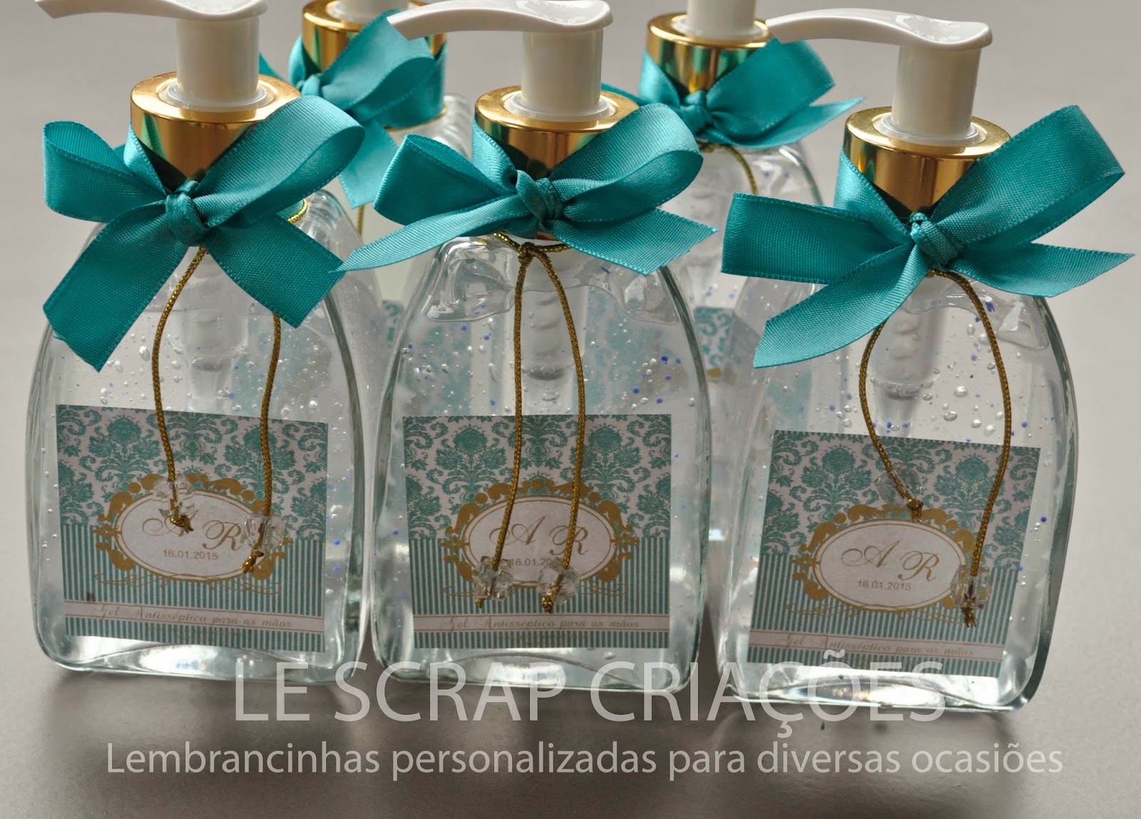 Frascos de Gel Antisseptico confeccionado para compor o kit confeccionado para presentear os pais.