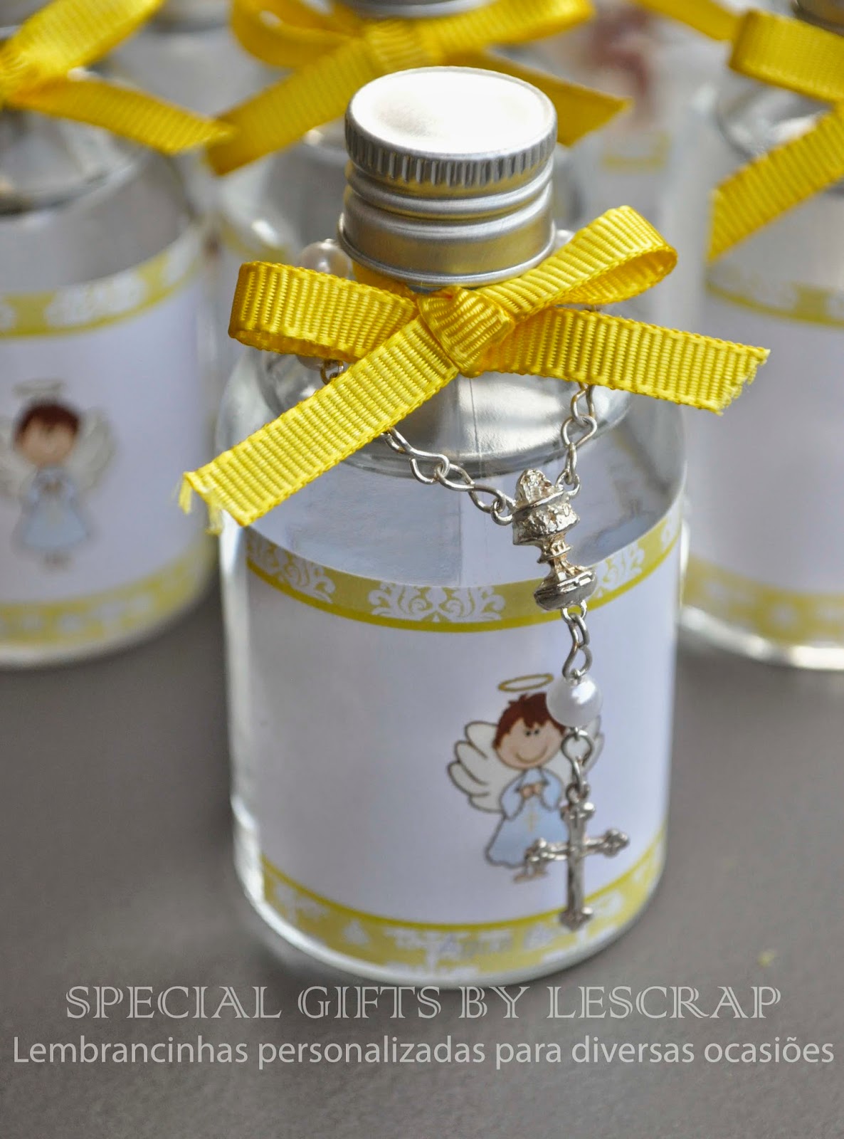 A mamãe muito caprichosa solicitou que fosse conficionado algumas garrafinhas de agua benta.