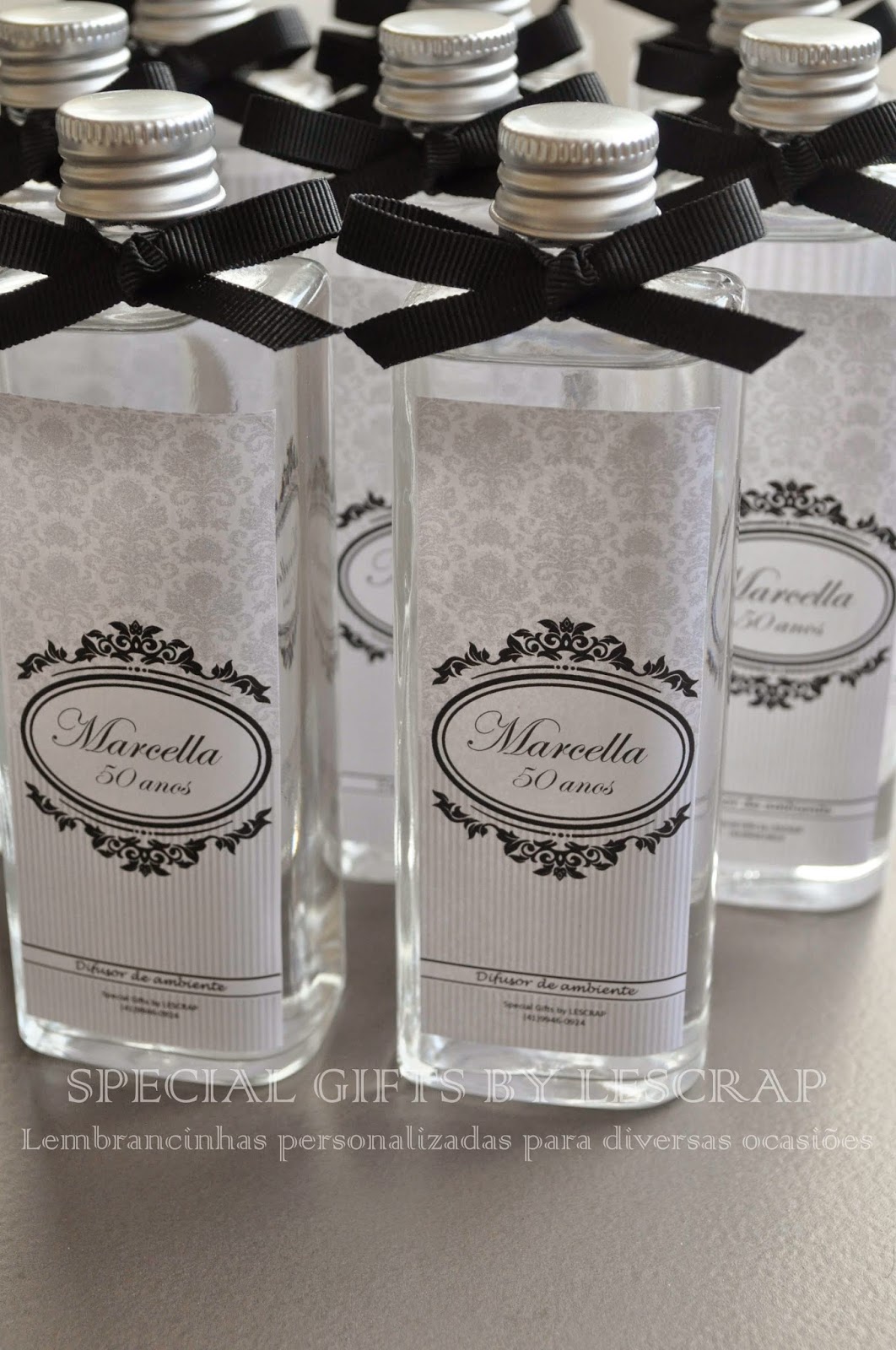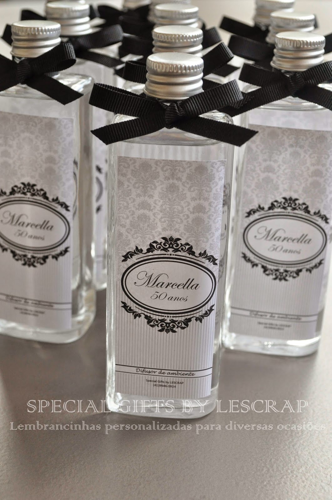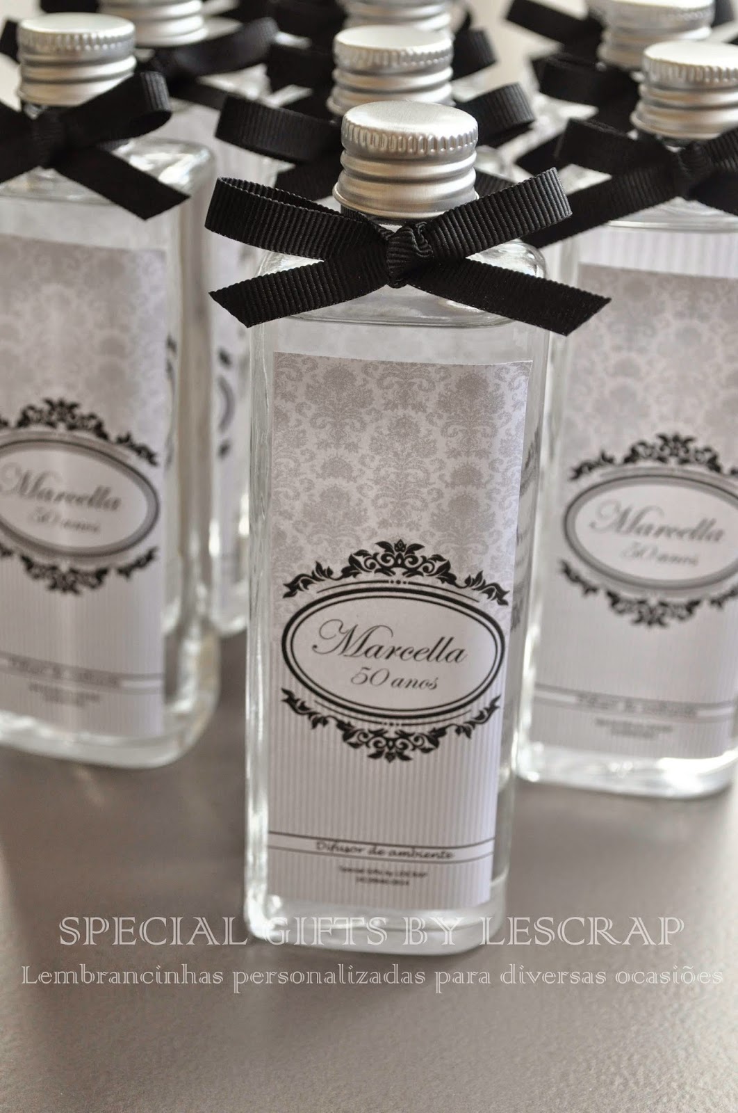 Como lembrancinha confeccionamos frascos de difusor de ambiente modelo retangular de 100ml.