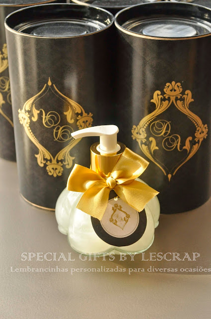 O modelo escolhido foi um sabonete liquido modelo Charm de 250 ml acompanhado de uma linda embalagem.