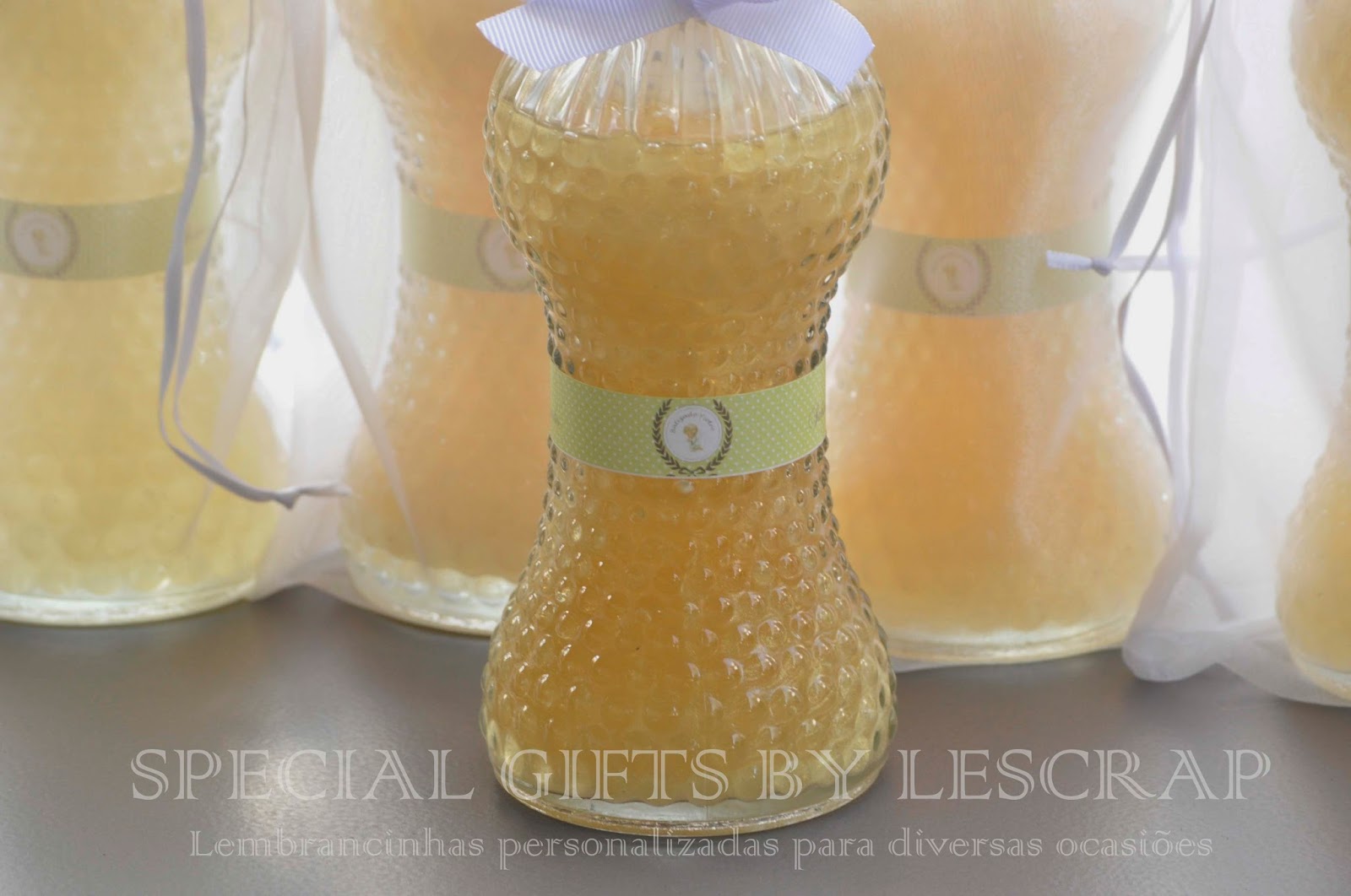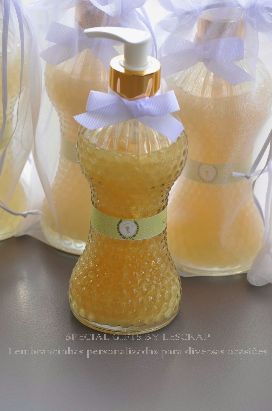 Para o batizado do Pietro a mamae escolheu presentear os convidados com um frasco de sabonete liquido modelo retro de 250 ml.