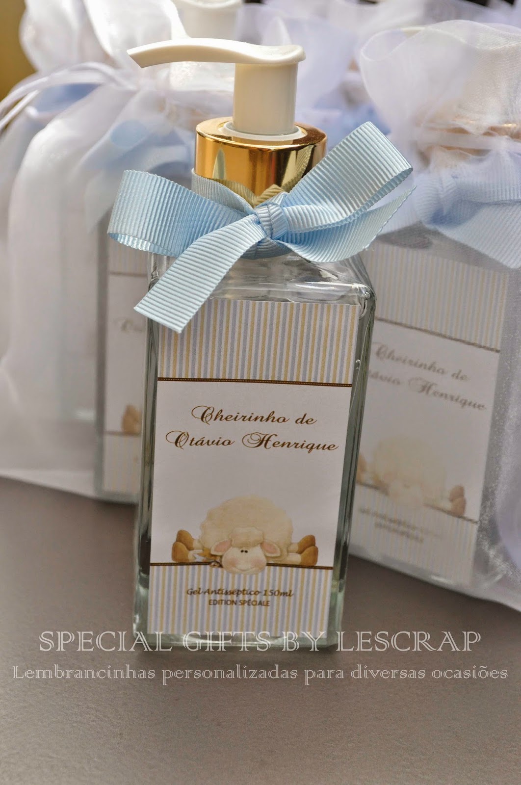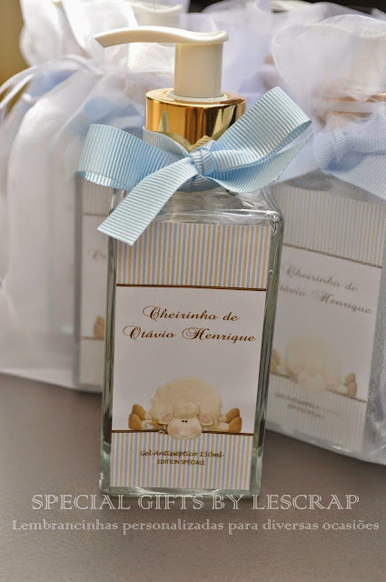 Para o nascimento do Otávio Henrique a mamãe escolheu presentear suas visitas com um frasco de gel antisseptico modelo quartier de 150 ml.