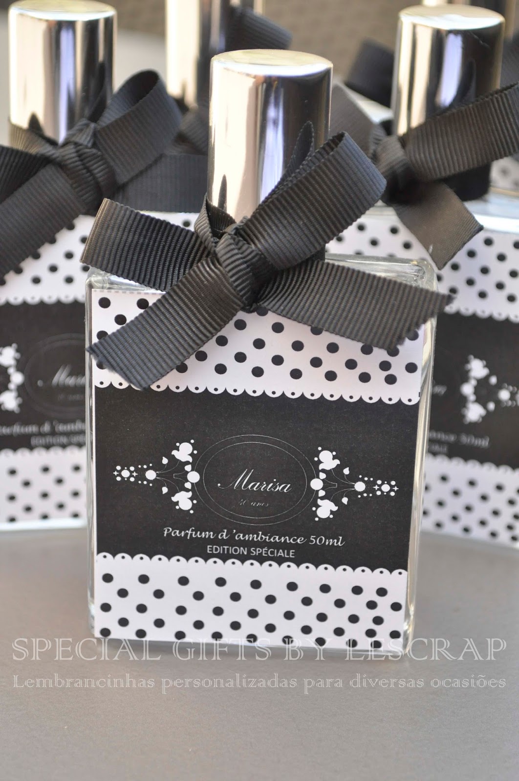 Home Spray modelo chanel de 50 ml confeccionado como lembrancinha para o aniversario de 4.0 da Marisa.