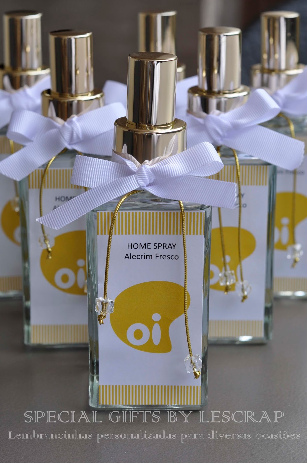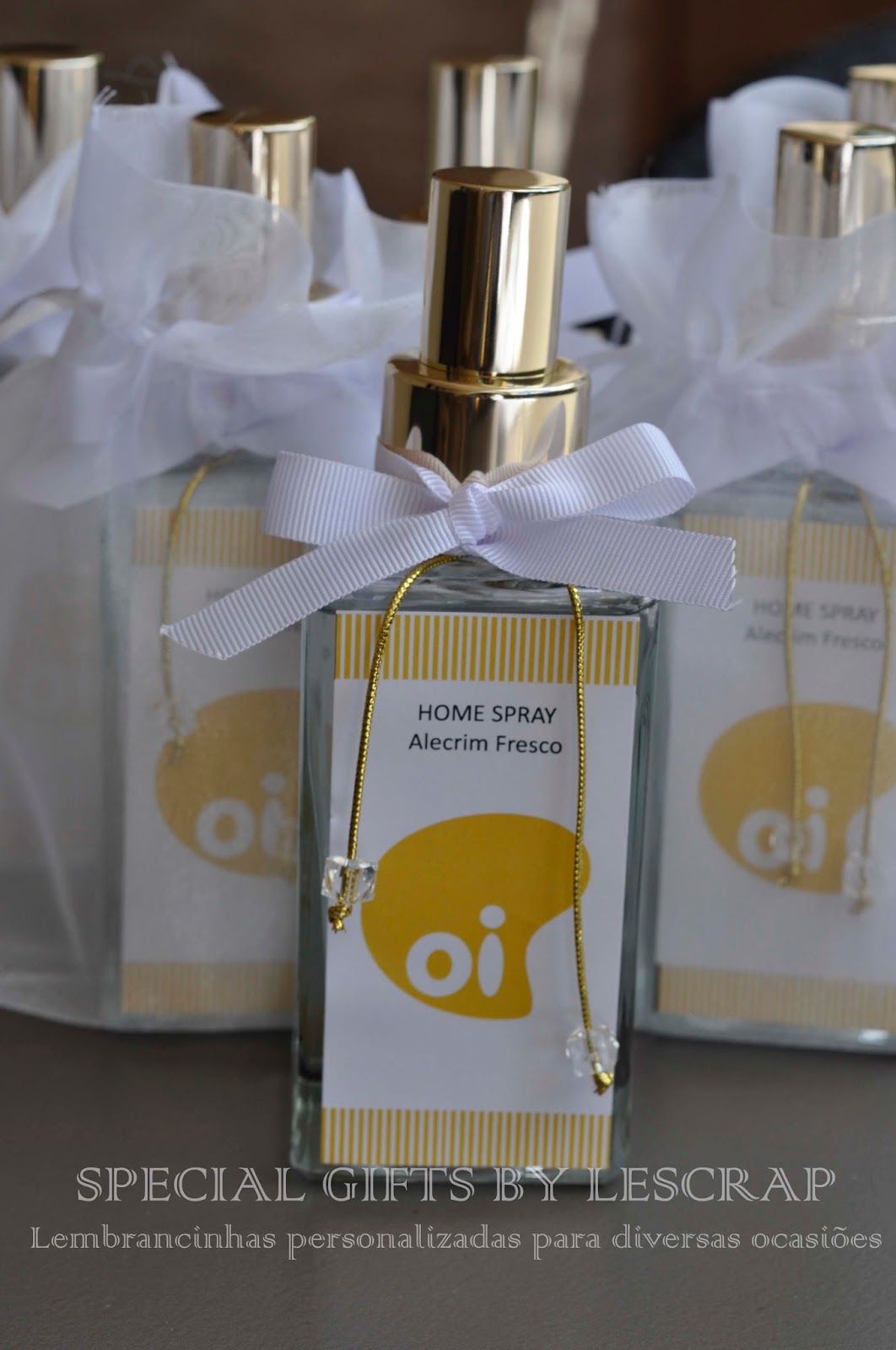 Frasco de home spray modelo quartier de 150 ml confeccionado como brinde corporativo para a empresa Oi Telefonia.