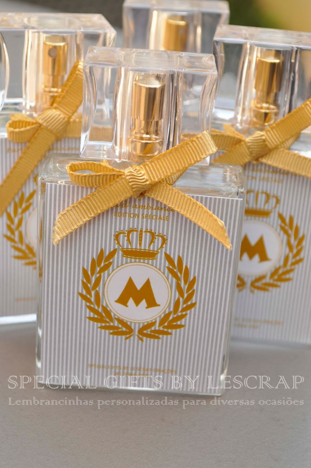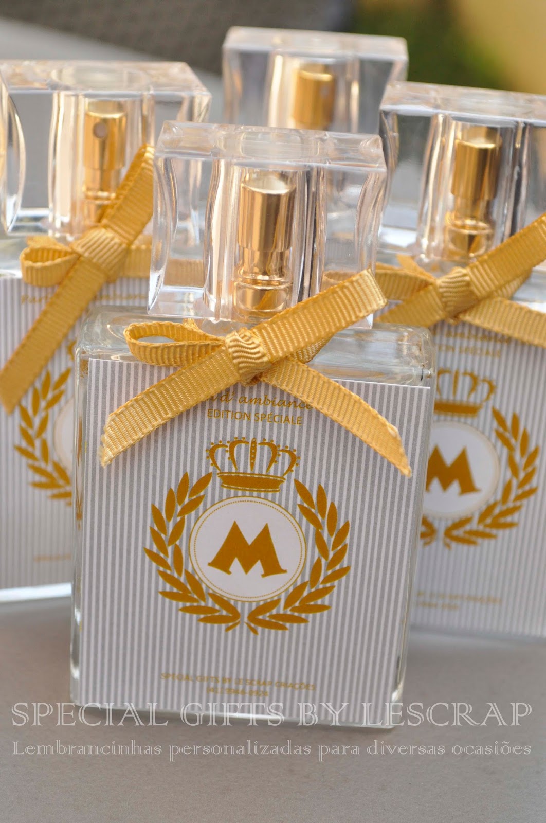 Frasco de home spray modelo chanel de 50 ml, rótulo personalizado, fita de gorgurão, embalagem de organza confeccionado para a chegada do Miguel.