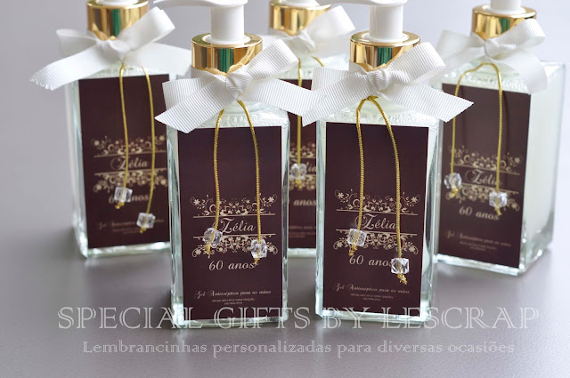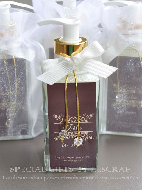 Frasco de Gel Antisséptico modelo quartier de 250ml confeccionado para o aniversario d6 60 anos da D. Zélia.