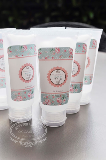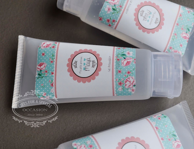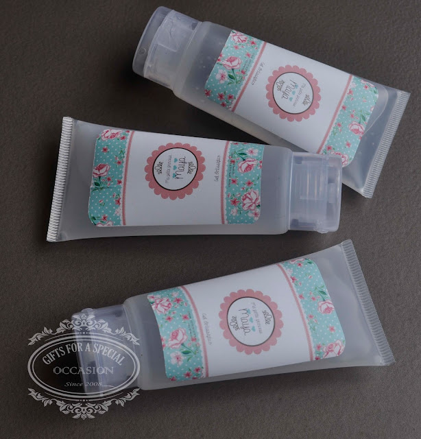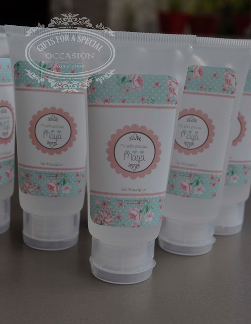 Para presentear amigos, familiares a mamãe escolheu como lembrancinha uma bisnag de gel antisséptico de 60gr.