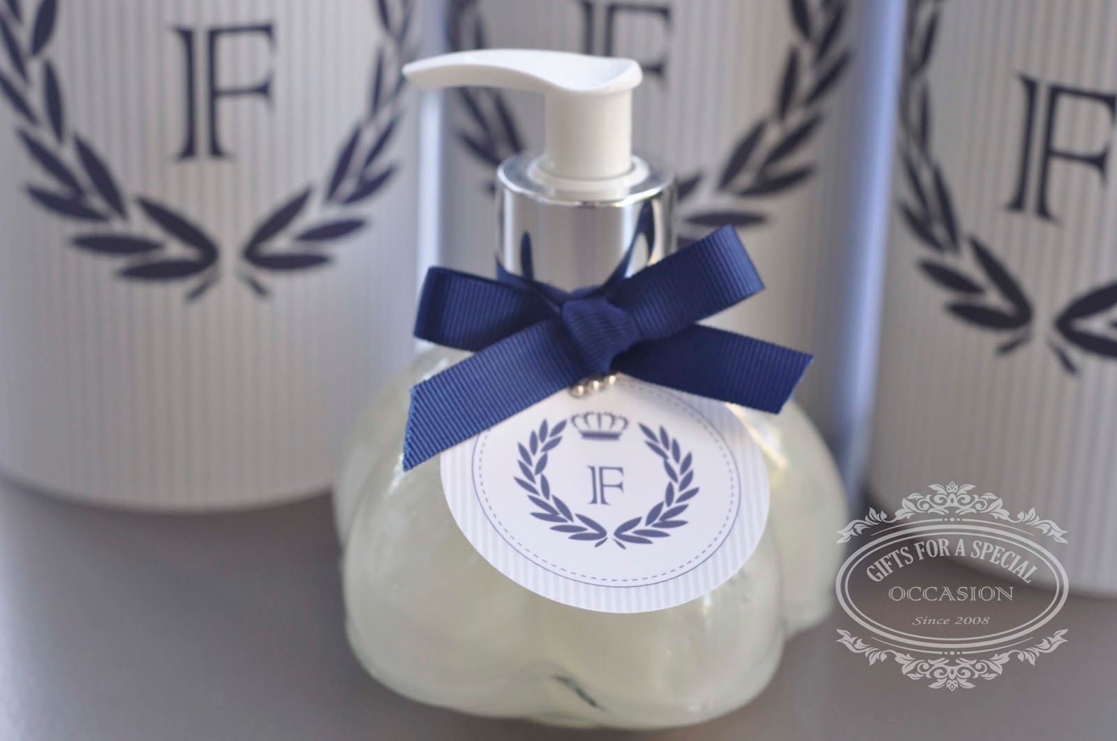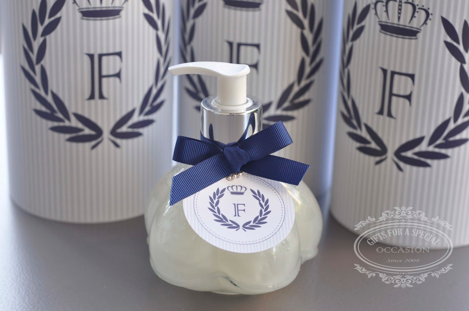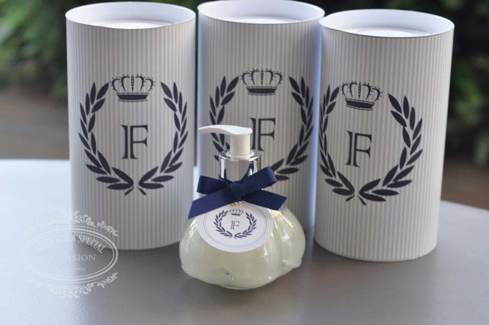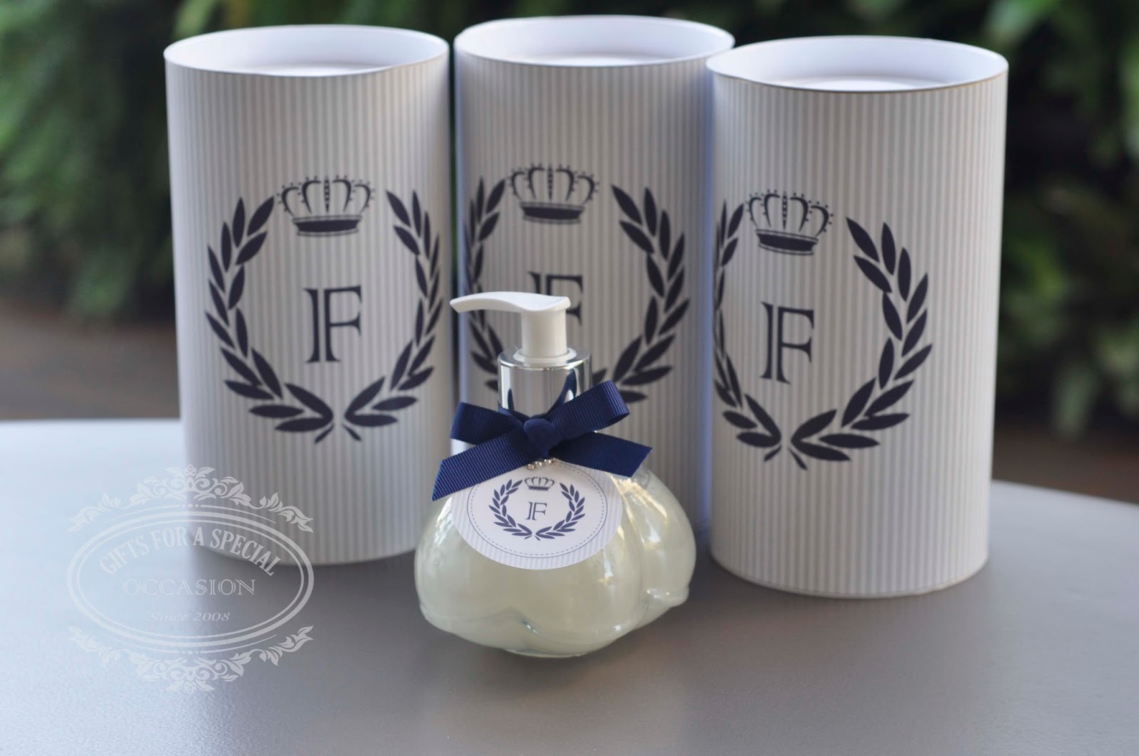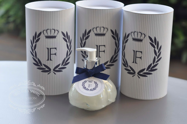 Sabonete liquido modelo charm de 250ml acompanhado de embalagem personalizada para o nascimento do príncipe Felipe.