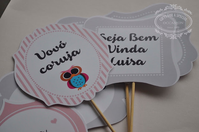Plaquinhas confeccionadas para o Chá de bebe da Luisa.
