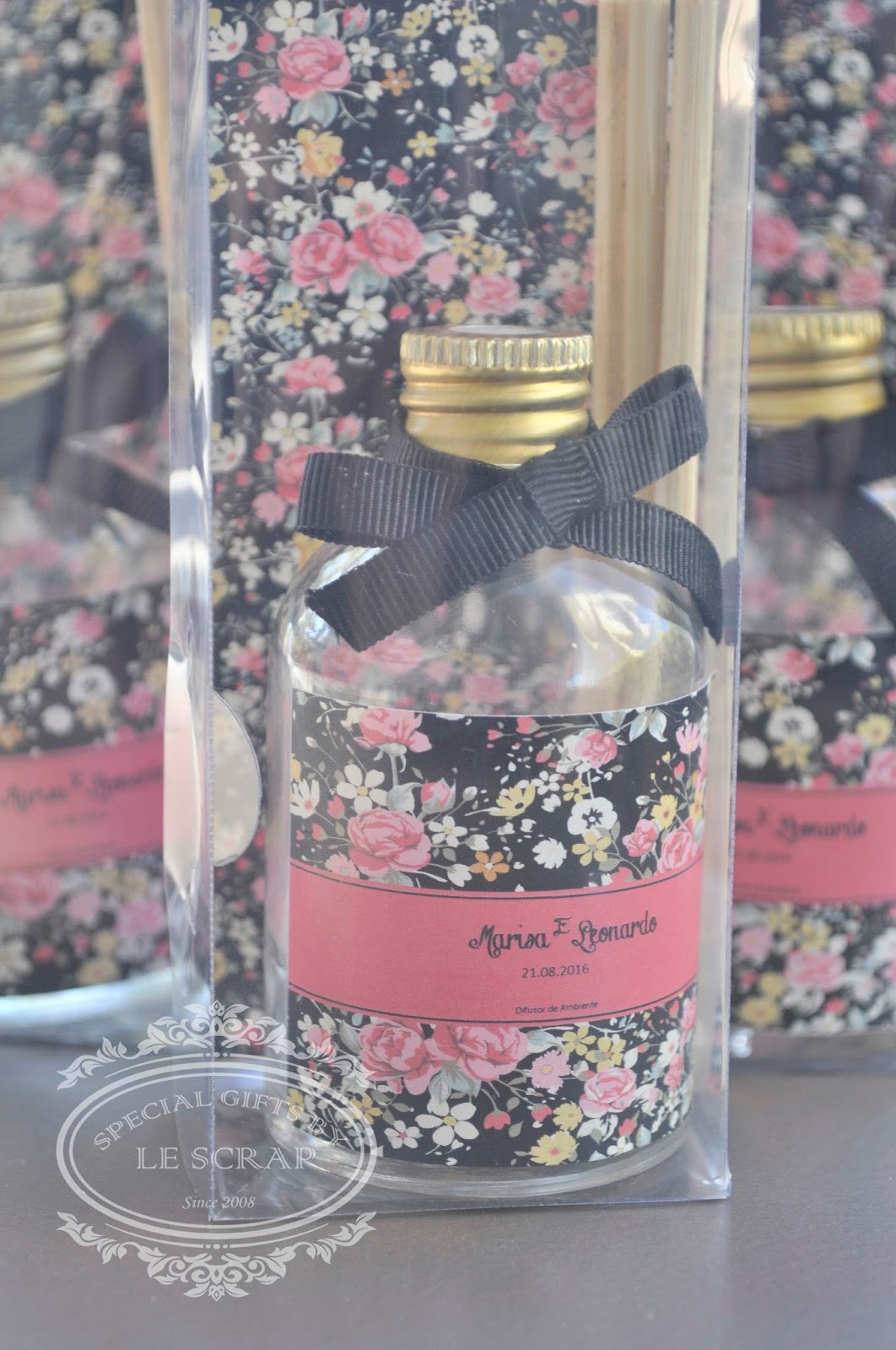 Transformando sonhos em realidade para este casamento confeccionamos Frasco de difusor de ambiente modelo cônico de 60ml acompanhado de embalagem de acetato e tag que poderá ser usado como marcador de livro.