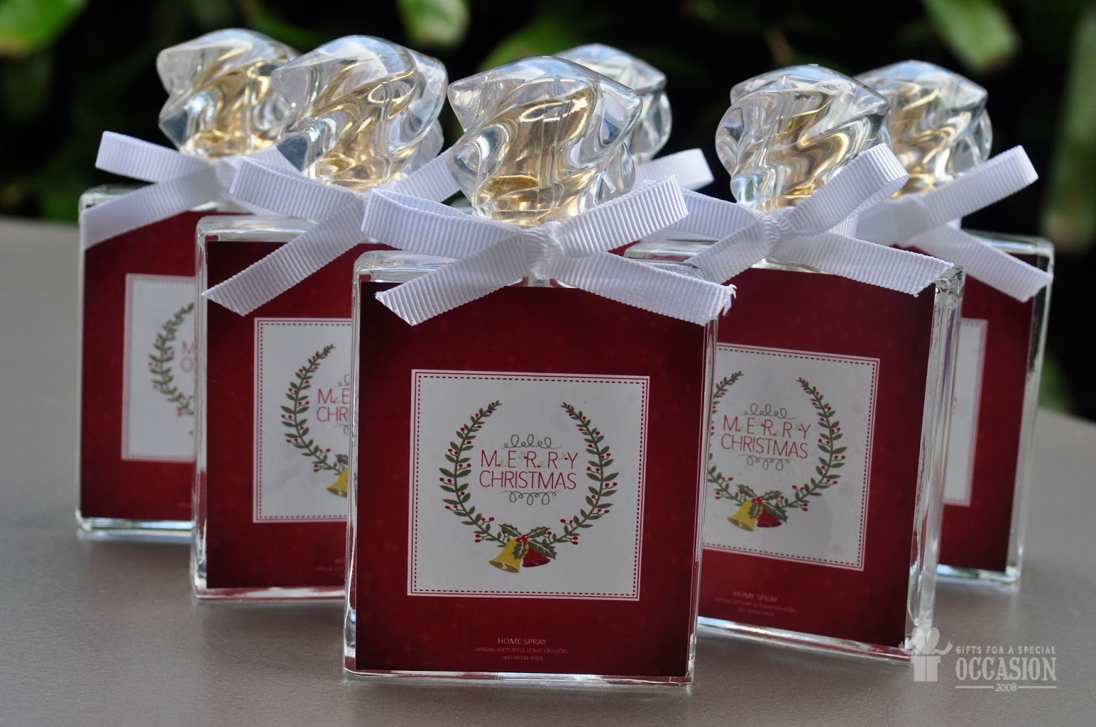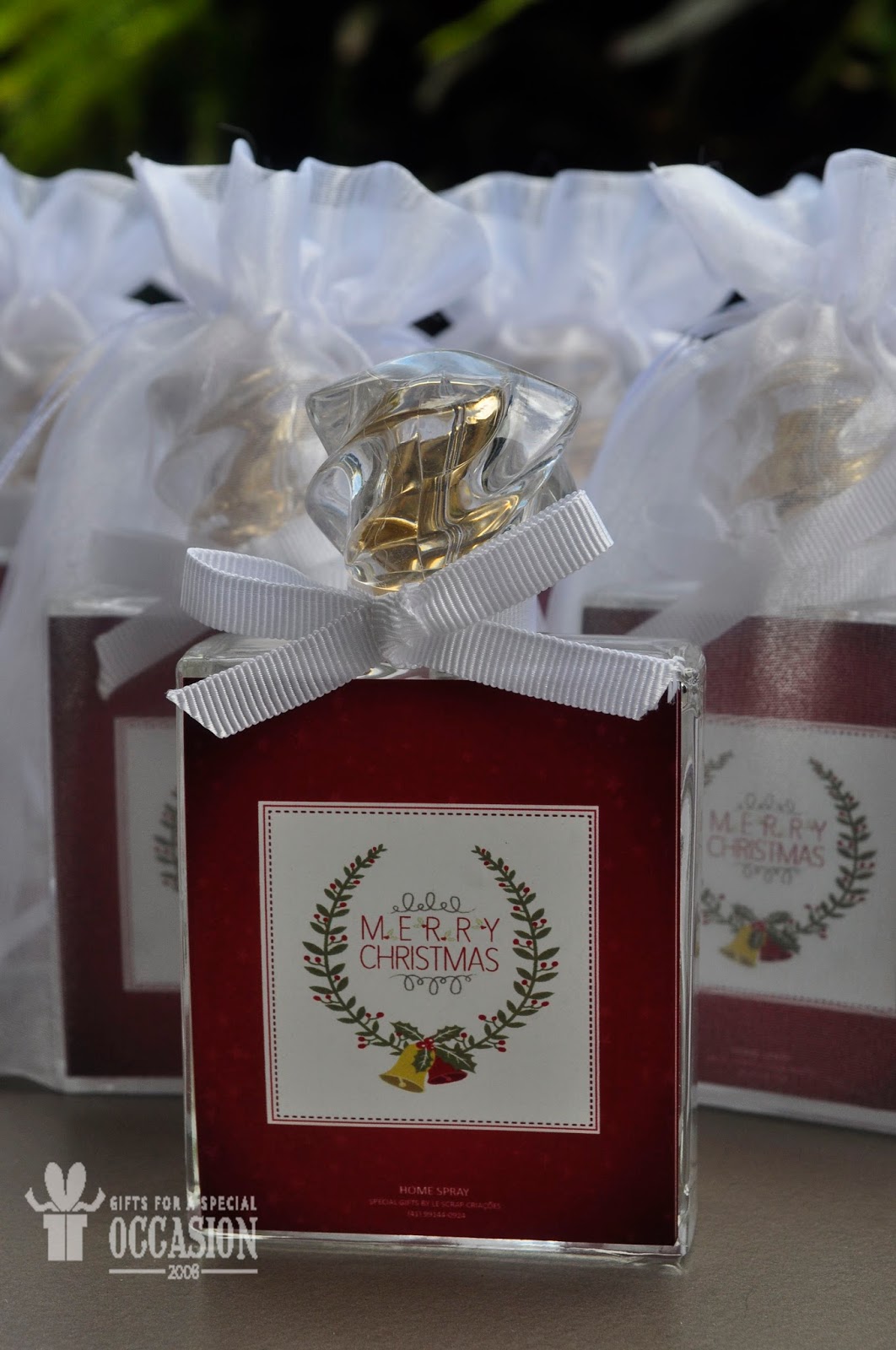 Home Spray modelo Chanel de 50ml com rótulo personalizado acompanha saquinho de organza e mensagem com votos de natal.