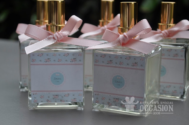 Como lembrancinha confeccionamos frascos de home spray modelo cubo de 100ml acompanhado de rótulo personalizado, fita de gorgurão e embalagem.