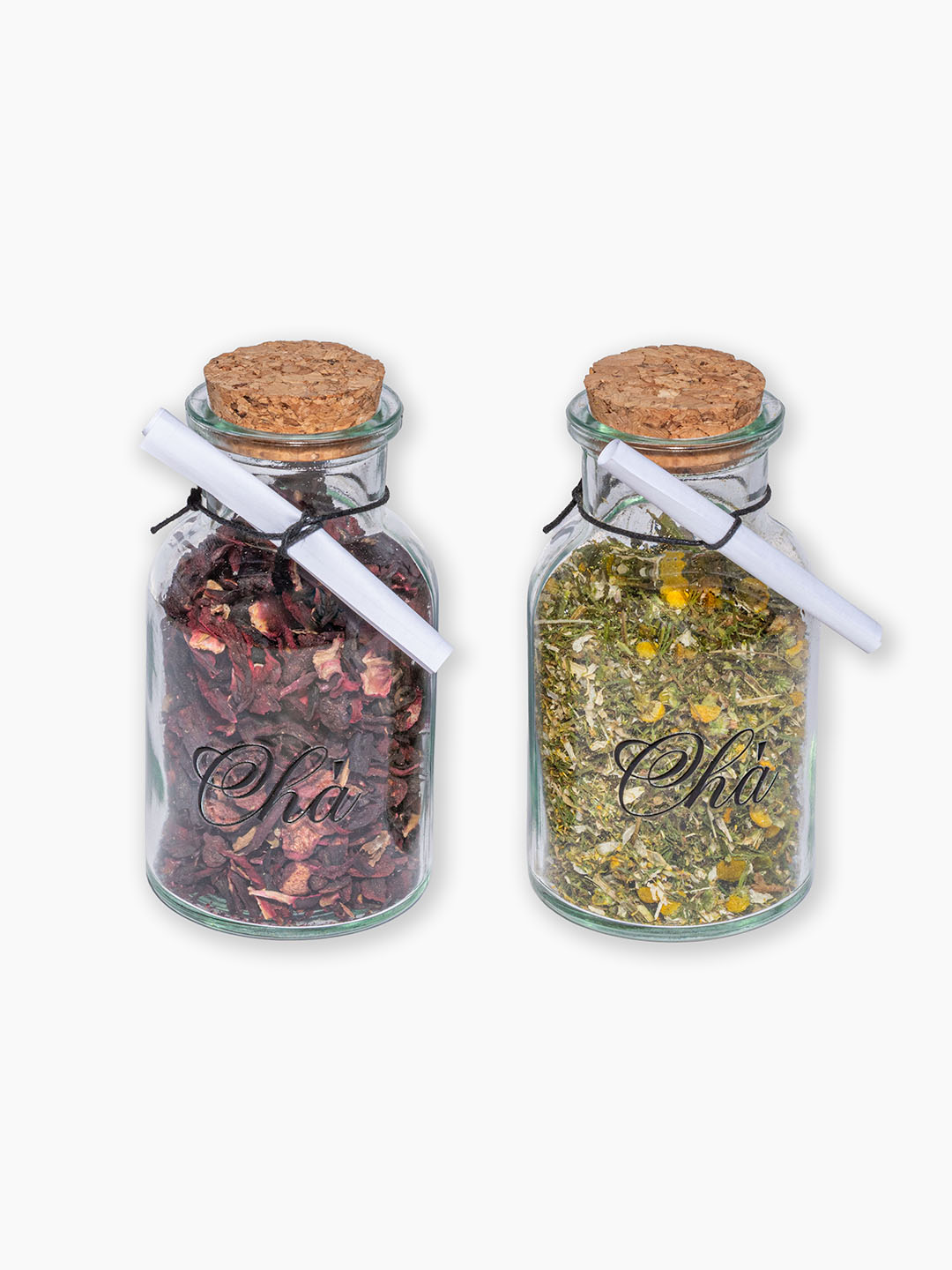 - 1 vidro com tampa de rolha contendo chá de hibisco