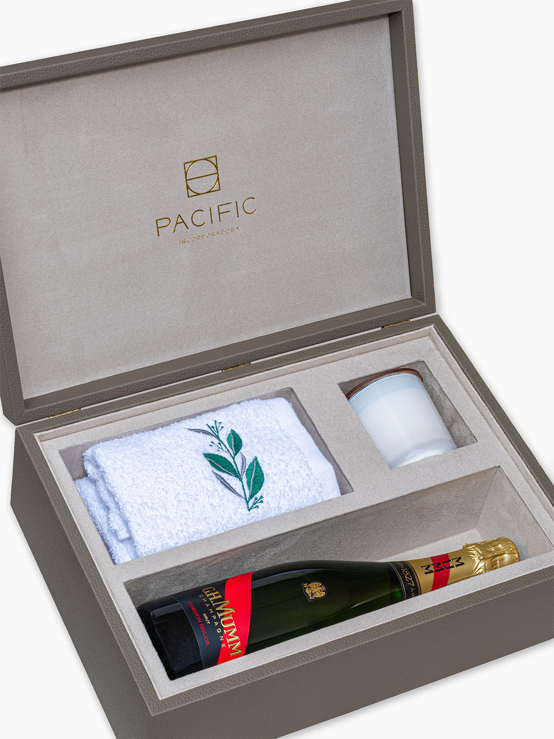 Desde o primeiro contato, a caixa comunica exclusividade. Produzida em MDF de alta espessura, com acabamento externo em couro ecológico premium e interior forrado em Suede, ela transmite presença, solidez e cuidado — características essenciais para empreendimentos de altíssimo padrão.