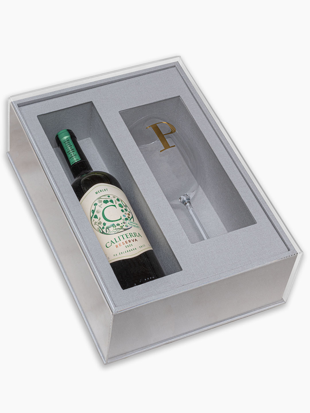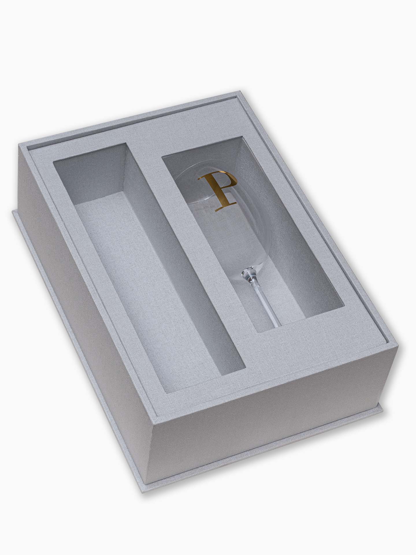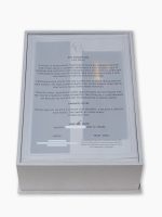 O formato bandeja com tampa de acrílico personalizada agrega um toque contemporâneo, enquanto a taça de cristal de 590 ml traduz requinte e bom gosto. Se preferir, você pode optar pela caixa sem os itens internos, adaptando o berço conforme o tipo de bebida e taça escolhidos.