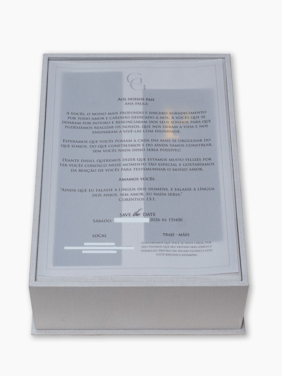 Cada detalhe é pensado para transmitir carinho, gratidão e elegância — afinal, celebrar o amor merece um presente à altura desse momento tão especial.