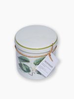 Primeiramente, o pote de porcelana branca foi pensado para durar: depois que a vela acaba, ele vira um elegante porta-joias ou um item de décor para banheiro.